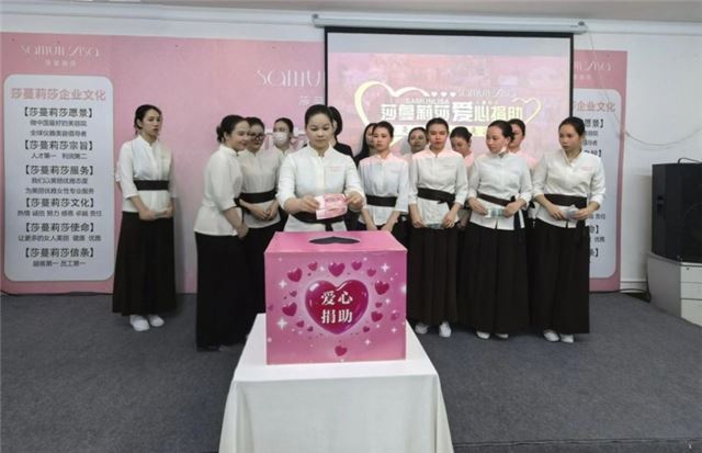 十几年来,莎蔓莉莎人满怀感恩,用心搭建平台,致力于创建有爱的幸福型企业,为客户打造专业的优质服务。莎蔓莉莎创始人总裁庄总说: “用爱心做事业,用感恩的心做人!”这句话一直激励着积极努力的莎蔓莉莎人,引导着她们用感恩的态度对待生活,把感恩的种子深深种在心间。