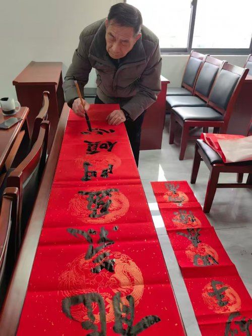 每到春节前夕,张公水还有个雷打不动的“任务”——为村民书写春联。这事儿,他已经坚持多年,成了村里过年的一道独特风景。他早早地备好笔墨纸砚,在院子里摆开架势。村民们围在一旁,你一言我一语地挑选着心仪的对联内容。张公水全神贯注,饱蘸浓墨,运笔如飞,不一会儿,一幅幅带着墨香的春联就铺满了桌面。有人心疼他累,劝他歇一歇,他却笑着说:“不累不累,过年写春联,这是咱老祖宗传下来的习俗,也是咱村的热闹事儿,我乐意干!”
