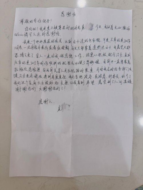 近日,一封字迹朴拙却情真意切的感谢信,被送到星子镇人民政府工作人员手中。“对我们家庭的大力救助和支持,让我看到了希望,感受到了世间的温暖,太谢谢你们了!”字里行间流露的诚挚谢意,正是星子镇用心用情办好民生实事的生动写照。