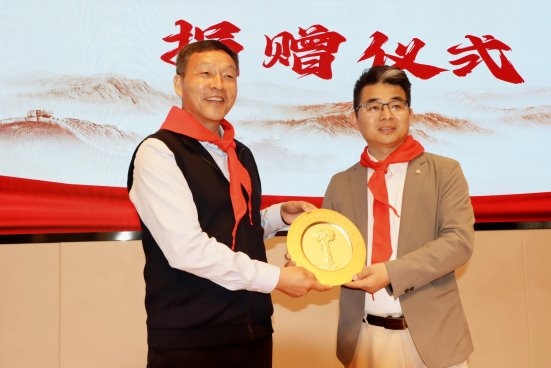 结合《我是马兰人》读本,全文诵读了马兰老兵涂庆荣“无法偿还的人生欠条”的感人故事:在父亲病危、母亲病重的两难时刻,身为国防科研施工技术骨干的涂庆荣,毅然选择坚守岗位,含泪写下“举杯邀月,恕儿郎无情无义无孝;献身国防,为祖国尽职尽责尽忠”的对联,忍痛告别亲人返岗攻坚,最终未能见到父亲最后一面,用一生的愧疚诠释了舍小家为国家的无私奉献。这一故事,是无数两弹一星事业奋斗者的真实缩影,让现场听众深刻感受到马兰人以身许国、无怨无悔的赤诚初心。于建华代表组织单位,向当地朗诵示范基地捐赠了由湖南少儿出版社出版的《了不起的中国人》系列丛书及教育部指定中小学必读书本。